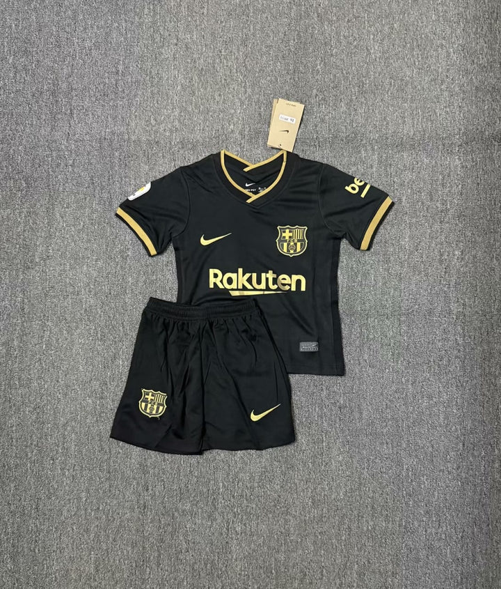 Kit Infantil Barcelona Retrô Away 2021 Camisa + Shorts Nike Unissex - Preto e Dourada