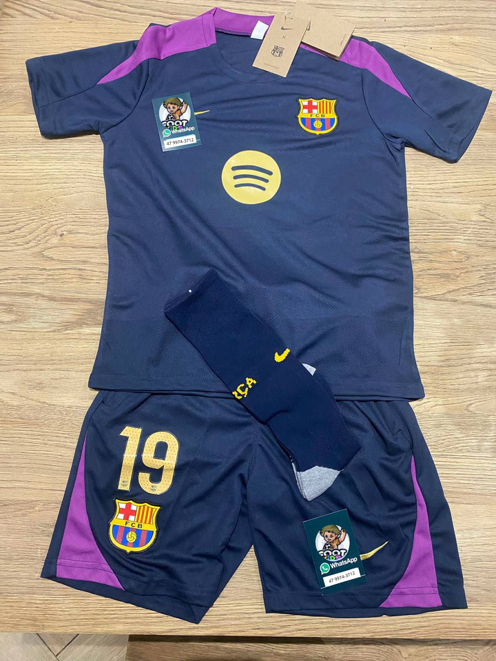 Kit Infantil Barcelona Treino 25/26 Camisa + Shorts Nike Unissex - Azul Escuro