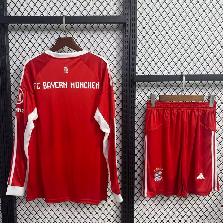 Kit Infantil Bayern de Munique Home Manga Longa 25/26 Unissex Adidas - Vermelho