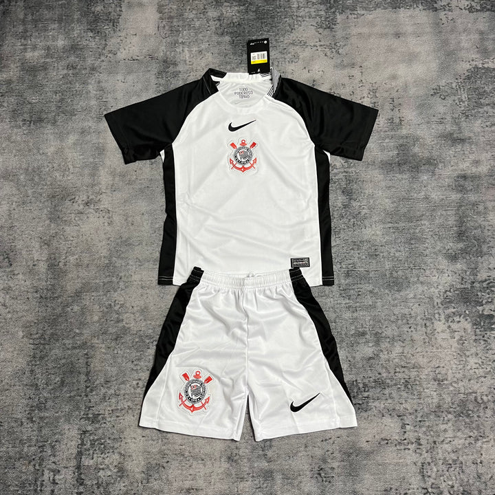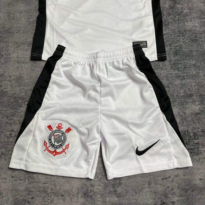 Kit Infantil Corinthians Home 25/26 Camisa + Shorts Nike Unissex - Branco e Preto