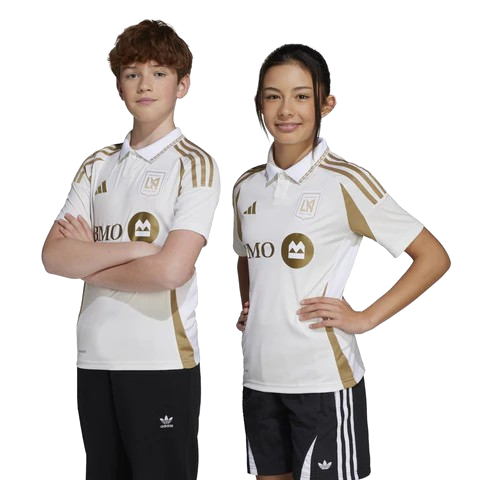 Kit Infantil Los Angeles FC Away 25/26 Adidas Unissex Masculina - Branco e Dourado