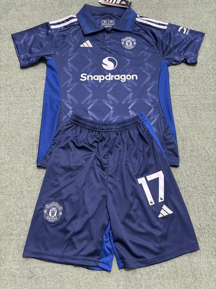 Kit infantil Manchester United Away 24/25 Unissex Adidas - Azul Escuro