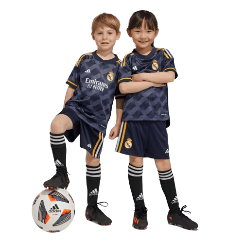 Kit Infantil Real Madrid Away 23/24 Camisa + Shorts Adidas Unissex - Preto e Azul