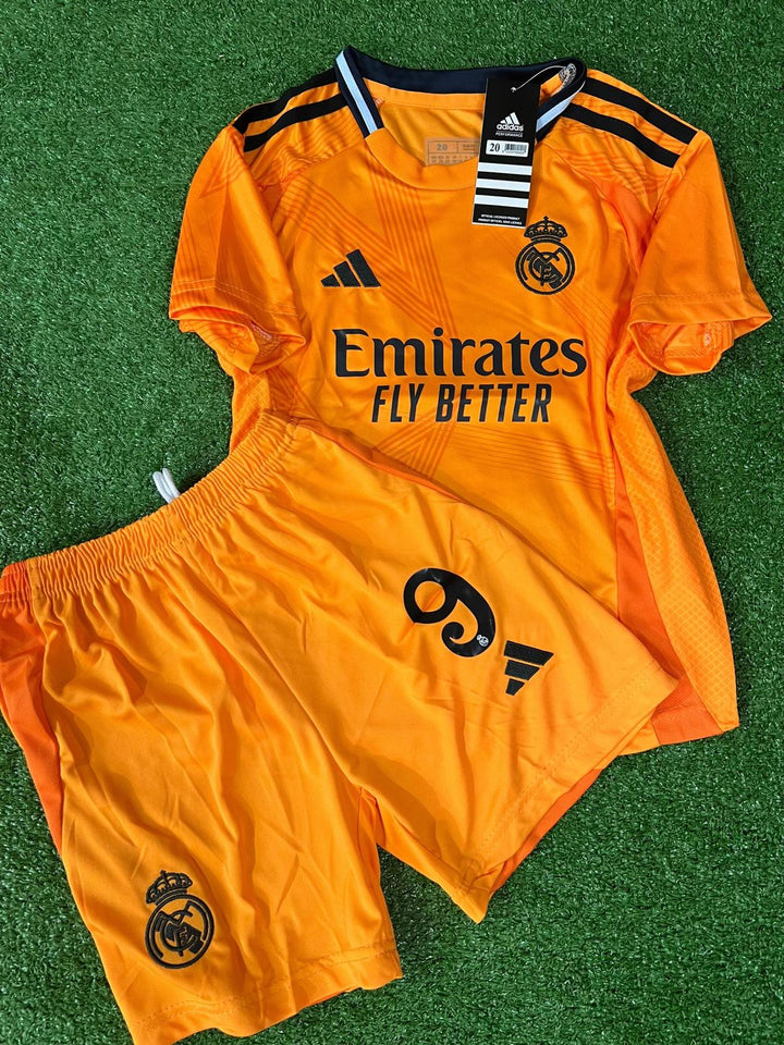 Kit Infantil Real Madrid Away 24/25 Adidas Masculina - Laranja