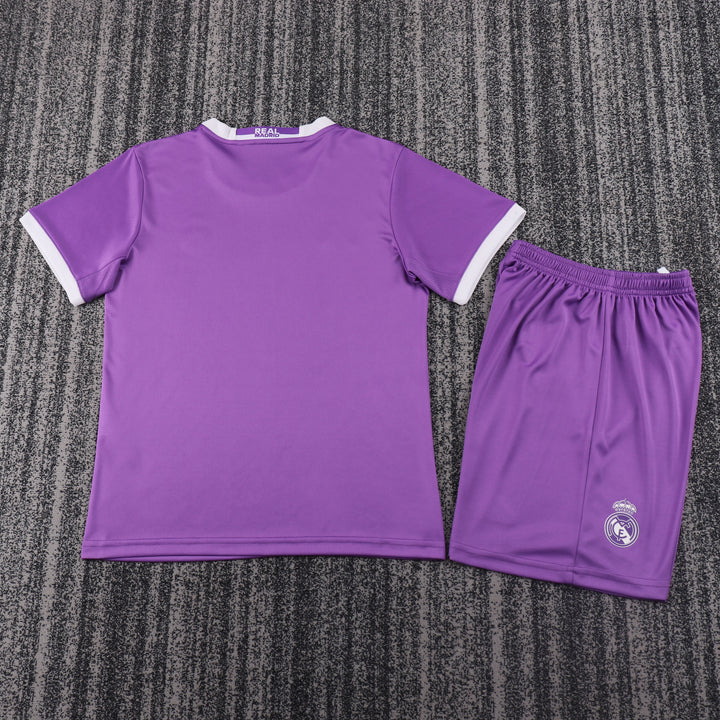 Kit Infantil Real Madrid Retrô Third 2017 Camisa + Shorts Adidas Unissex - Roxa