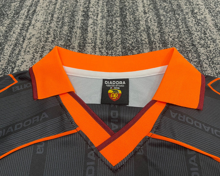 Kit Infantil Roma Away Retrô 1999 Camisa + Shorts Diadora Unissex - Preta e Laranja