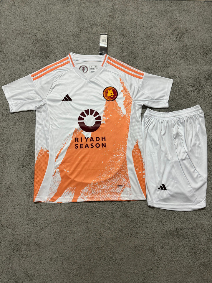Kit Infantil Roma Away Third 24/25 Unissex Adidas - Branco e Laranja