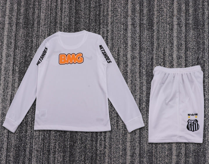 Kit Infantil Santos Retrô Home 2011 Manga Longa Camisa + Shorts Nike Unissex - Branca